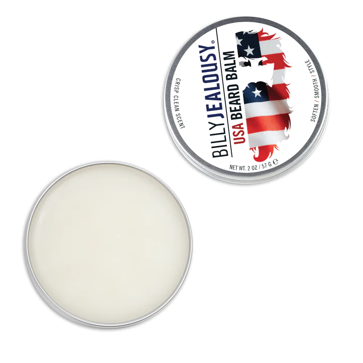 Bless the bearded heroes of our land with Billy Jealousy USA Beard Balm. Loaded with natural ingredients such as shea butter, coconut and castor seed oils, USA Beard Balm deeply conditions the bristliest of beards. Leaves beards feeling soft, manageable and frizz free. Yields greater styling properties than a traditional oil. Celebrate and honor your beard in all its magnificence.